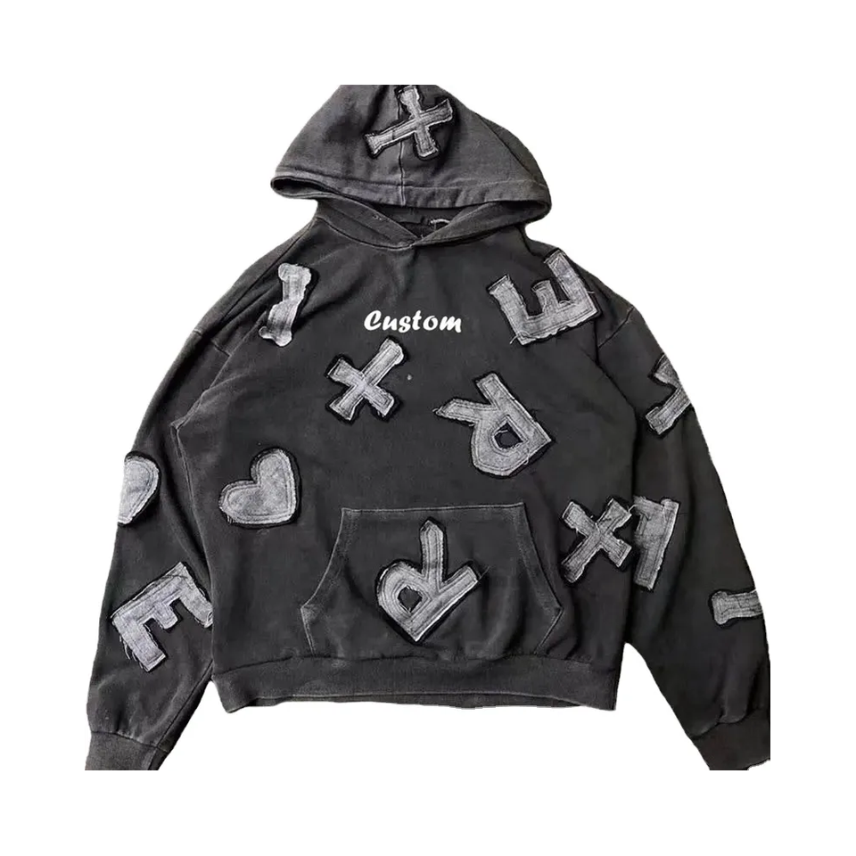 Sweats à capuche en détresse les plus vendus pour hommes à manches longues en coton Street Wear sweat à capuche d'hiver délavé à l'acide