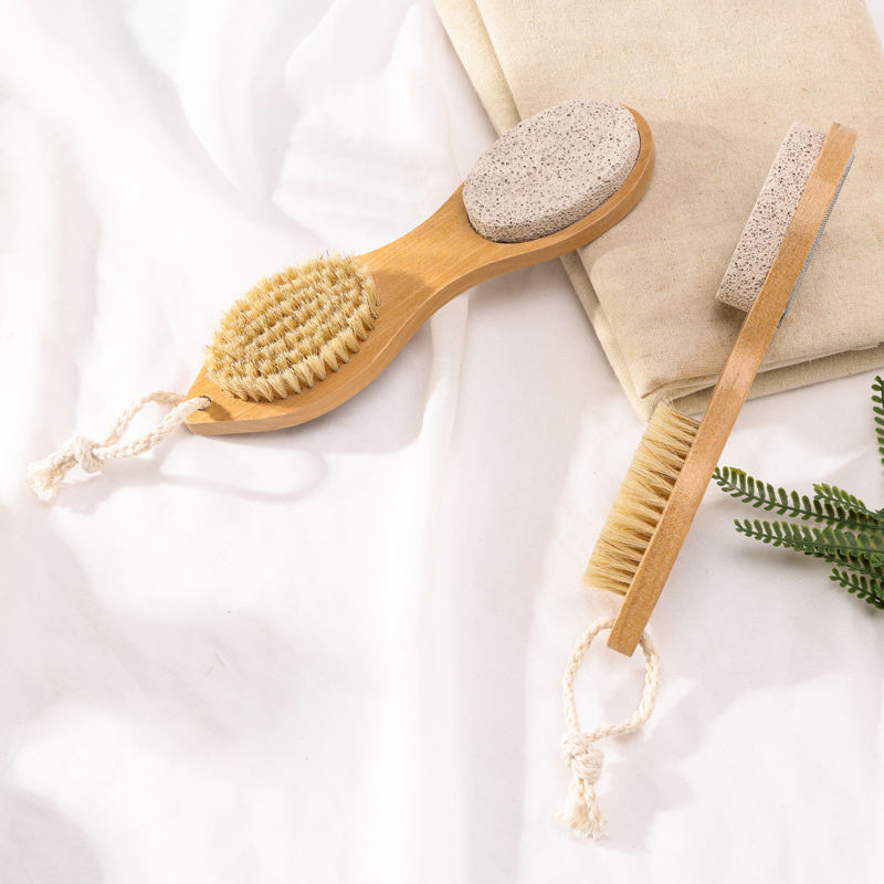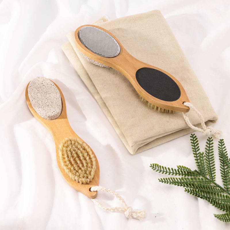 Top vente double face 4-en-1 nettoyeur de pieds Kit de pédicure limes en acier pierre ponce poils de sanglier épurateur en bois dissolvant de callosités