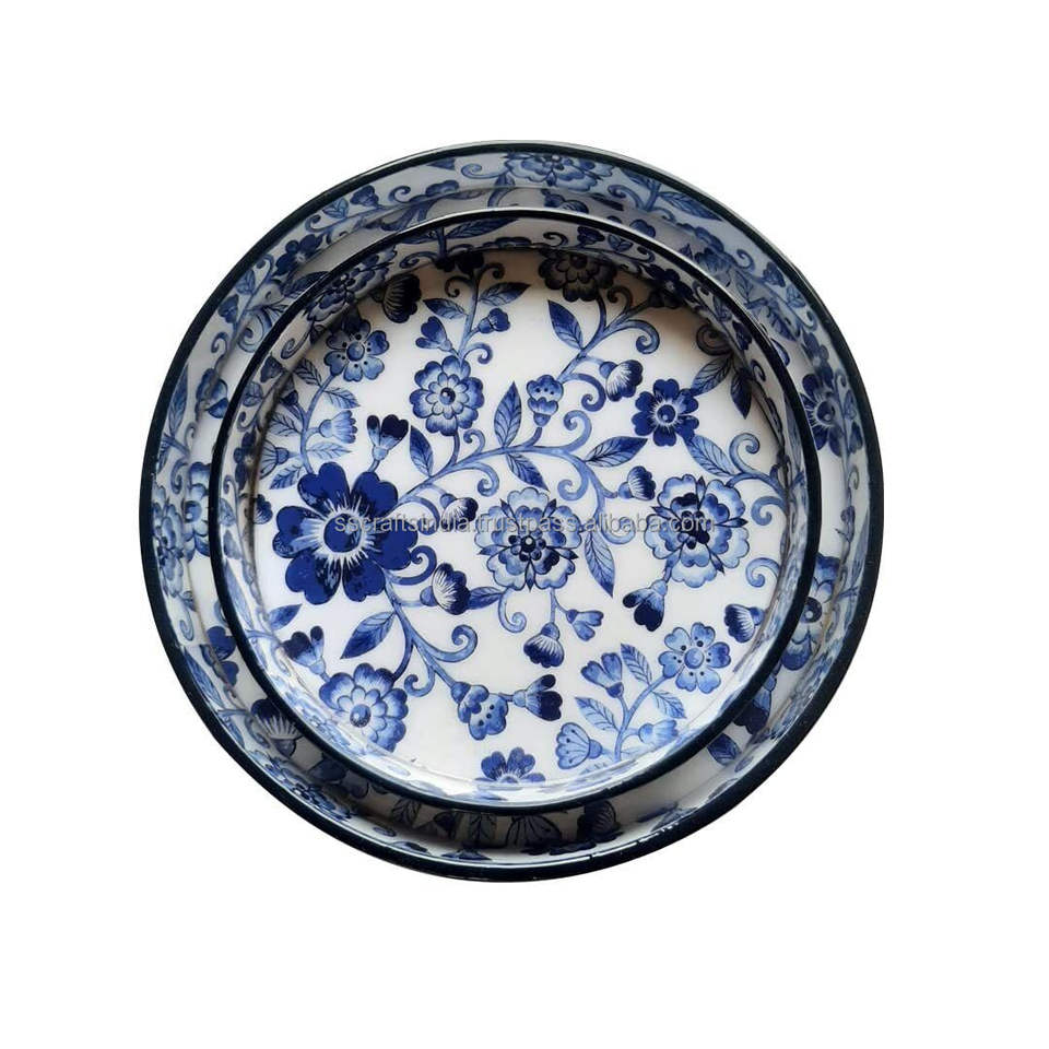 Plateau en bois imprimé à plateau carré en émail le plus vendu avec motif floral pour le service de fruits et le centre de table de mariage