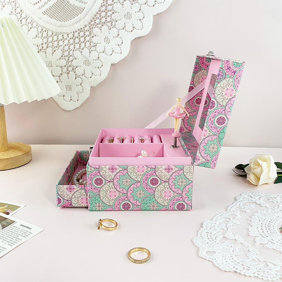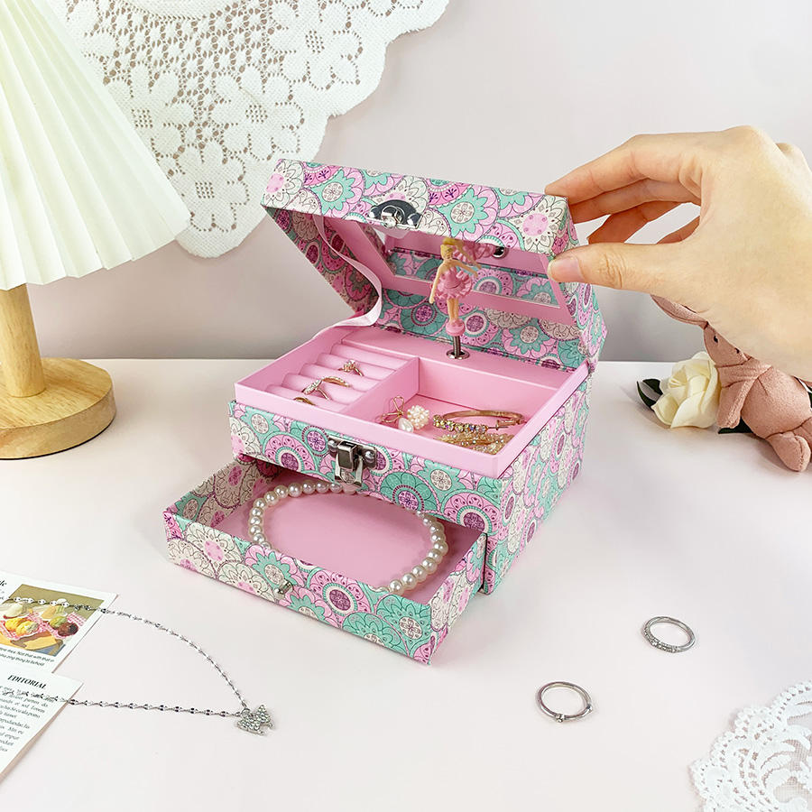 Boîte à bijoux musicale à 2 niveaux à imprimé floral, avec ballerine rotative et miroir, cadeau d'anniversaire idéal, best-seller