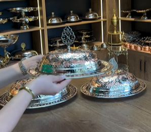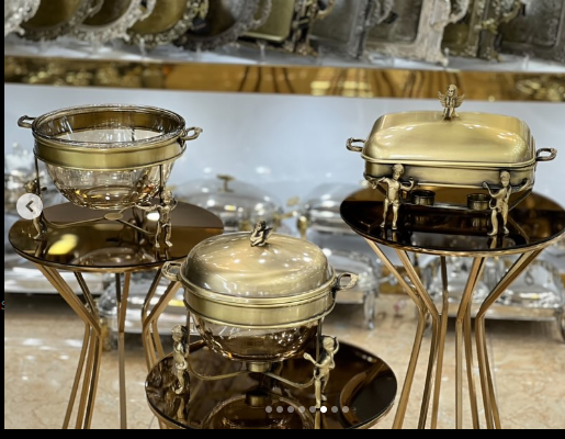 Serveurs de casserole de console en acier inoxydable les plus vendus Conception élégante de motif floral en laiton