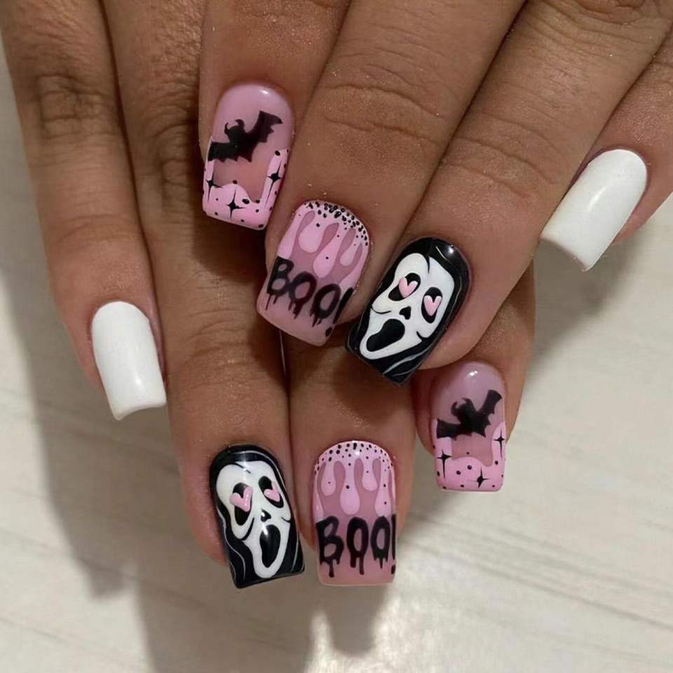 Top-vente français manucure pure fait à la main décalcomanies d'eau ongles artificiels colle Halloween photos faux ongles doigt conception Unique