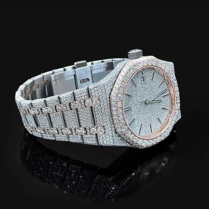 Montre sertie de diamants en moissanite or et or rose, best-seller, pour la culture rap et streetwear, disponible au prix d'usine