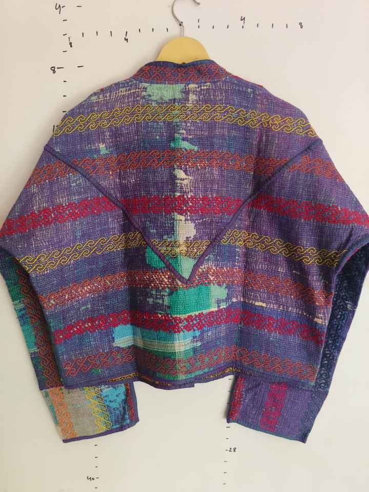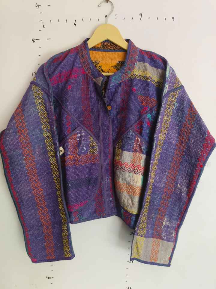 Veste courte en tricot réversible faite à la main, style vintage Kantha, à séchage rapide, brodée, style bohème, pour femme