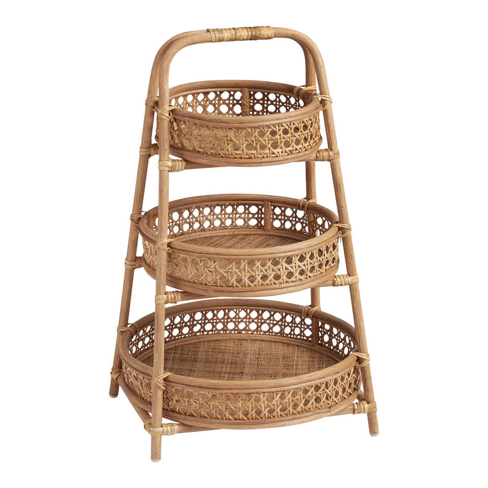 Rotin naturel rond fait à la main le plus vendu avec tour de stockage à 3 niveaux par Artex Thien Thanh