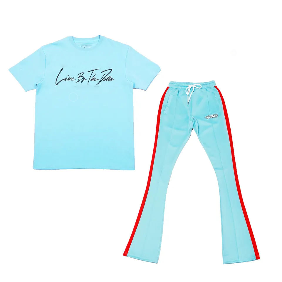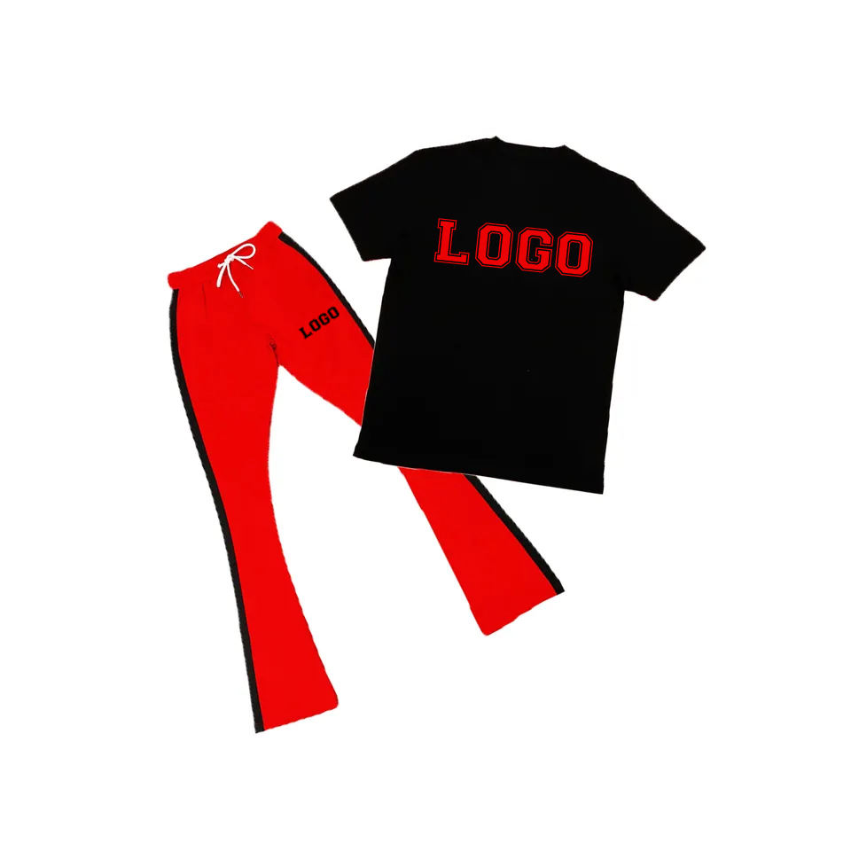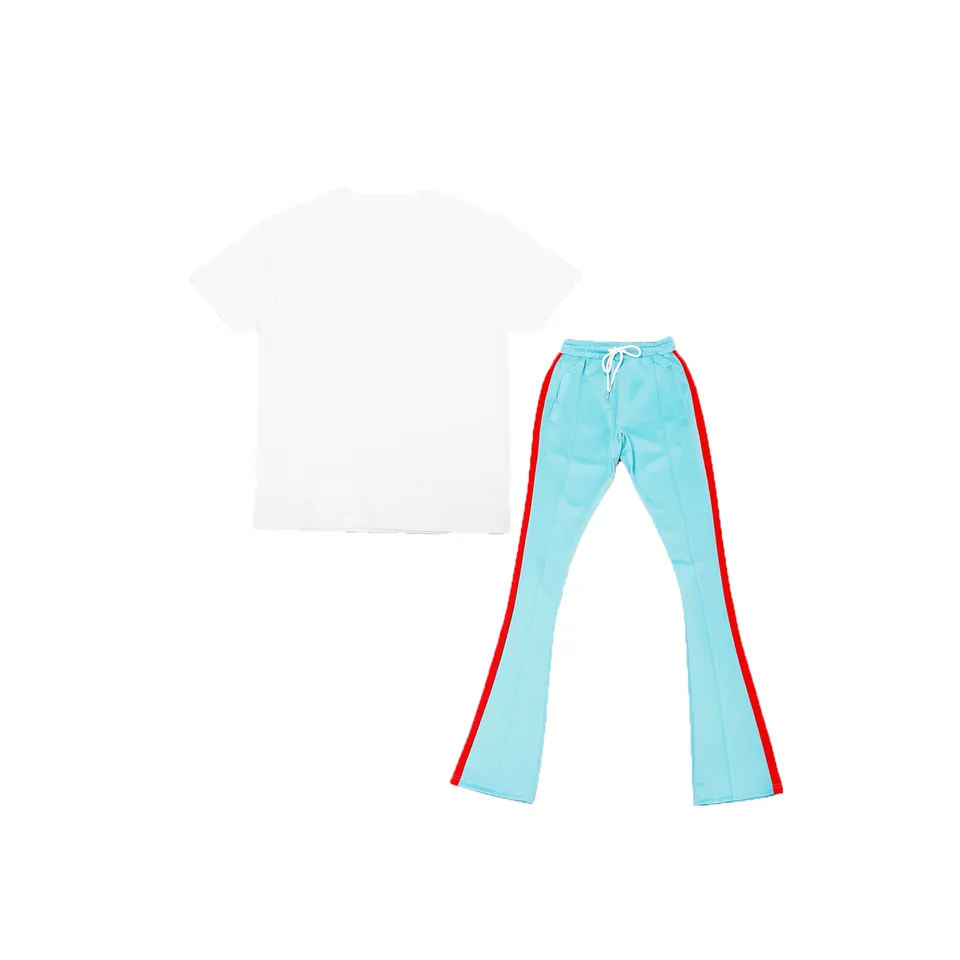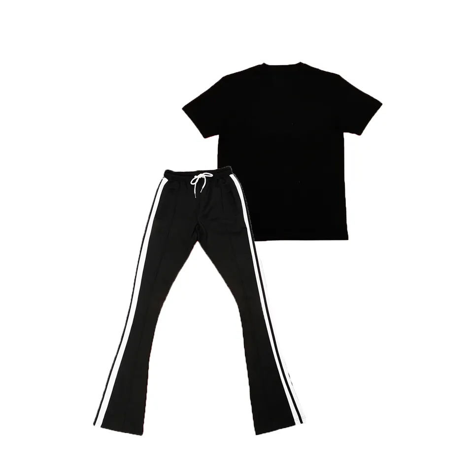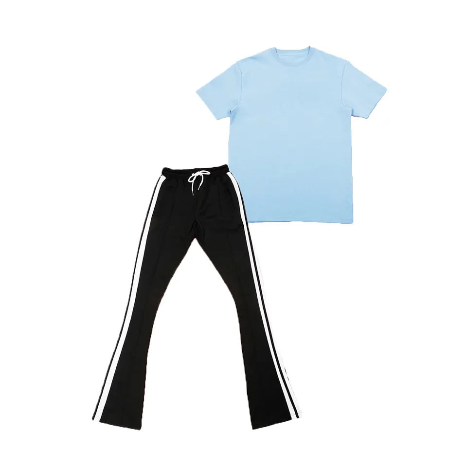 Top Selling Men's Stacked Pants Two Piece Set Summer Tracksuit Short Sleeve T-Shirt Jogger Suit Streetwear Matching Set for Men