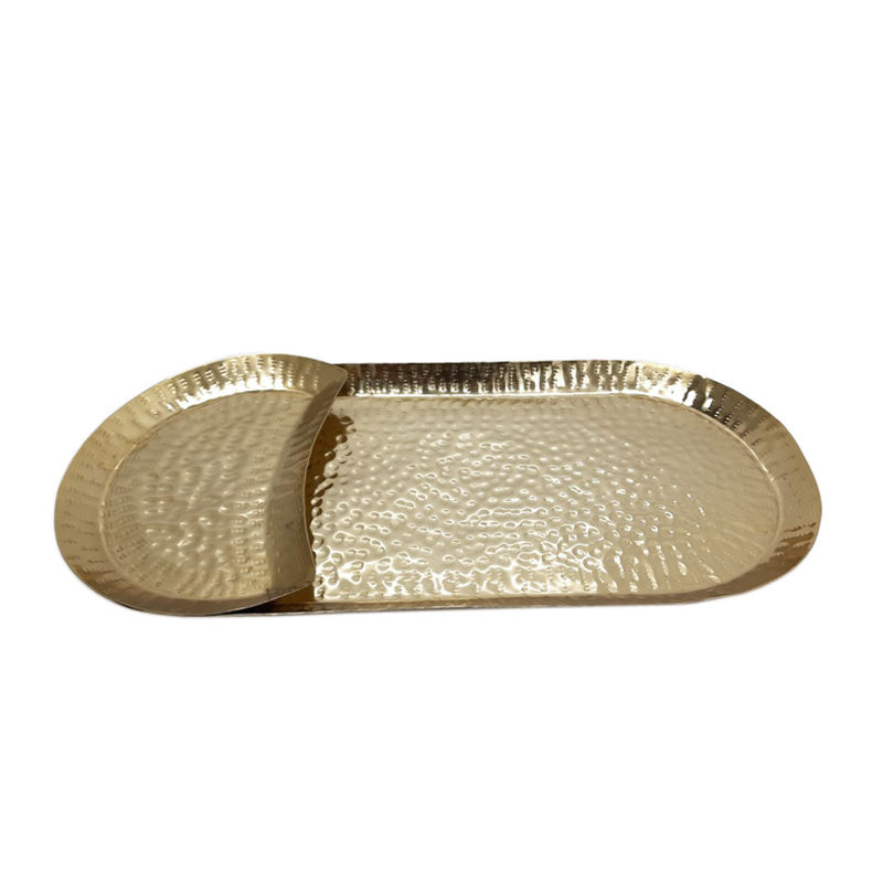 Plateau de service en forme de rectangle en métal le plus vendu couleur or pour la maison et l'hôtel plateau de service de nourriture de table fait à la main en vrac