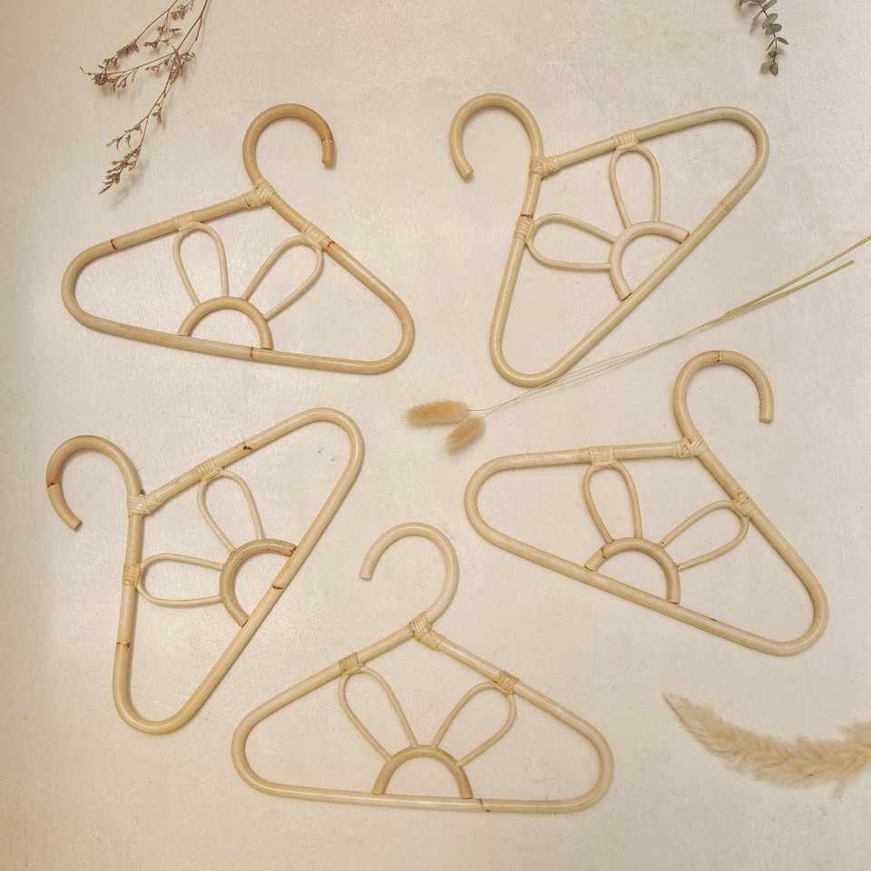Cintres naturels les plus vendus pour vêtements de bébé pliables ensemble de cintres de vêtements pour enfants en rotin en gros