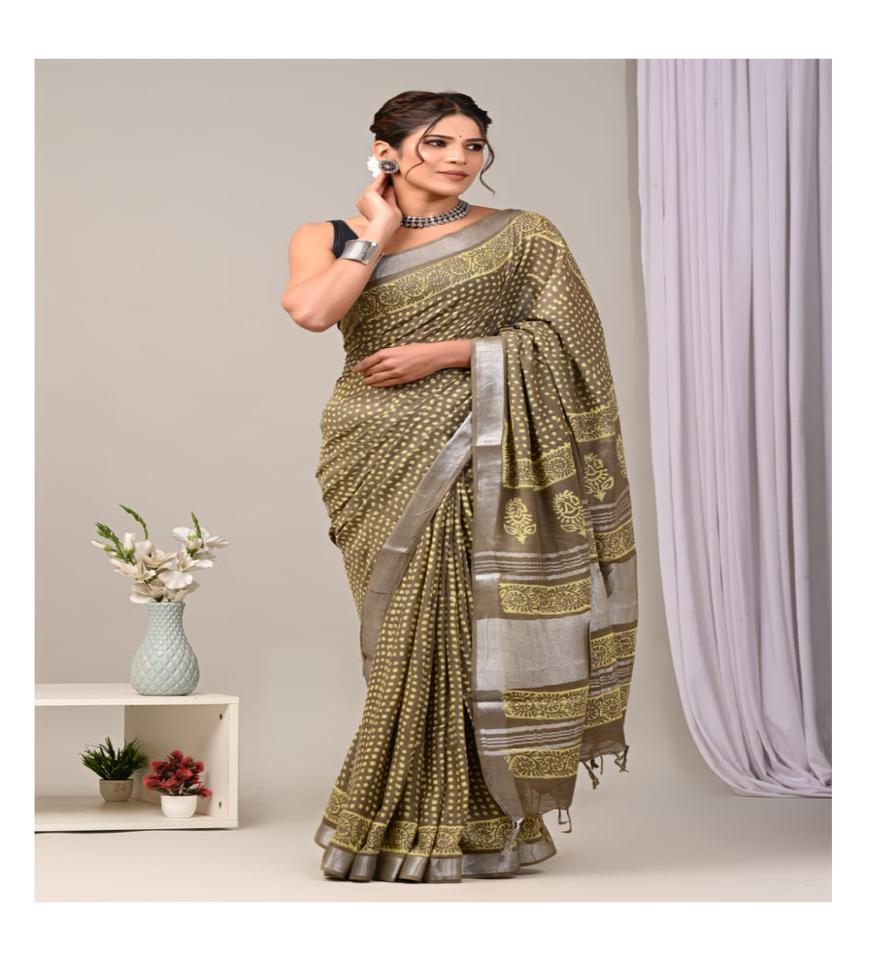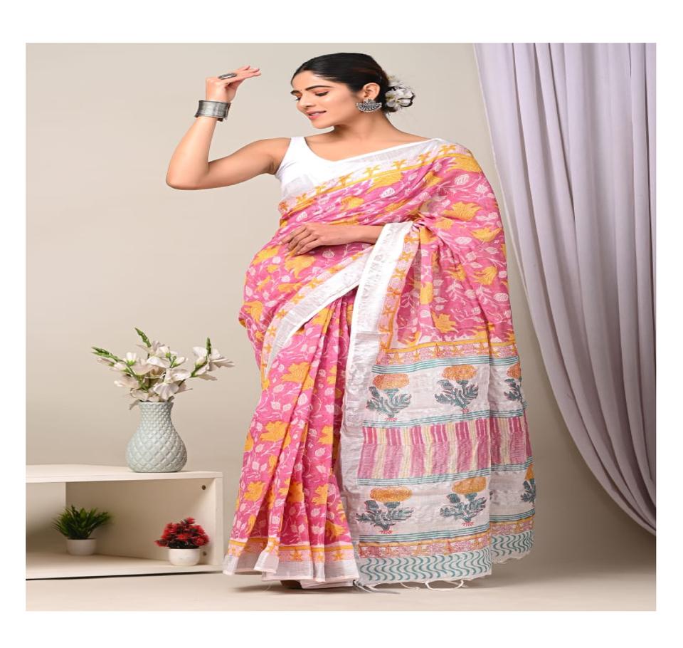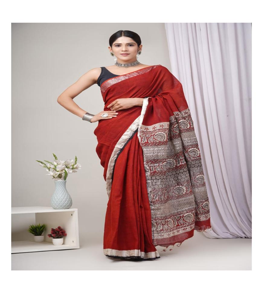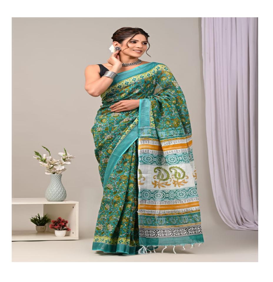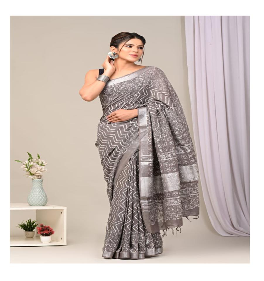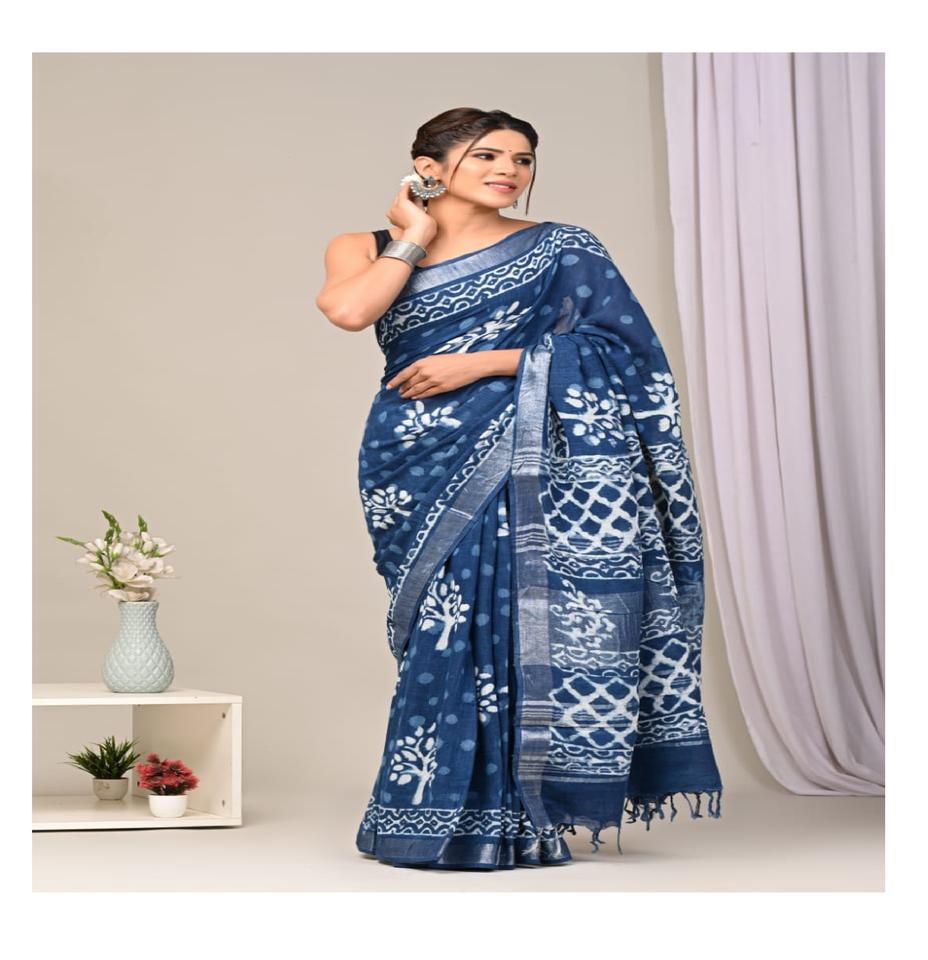 Sari pour femmes, style indien traditionnel, imprimé à la main, 100% lin pur, nouvelle collection, best-seller, pour mariage et occasions spéciales