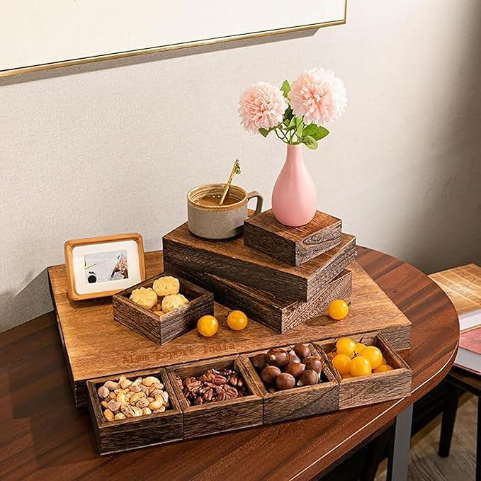 Top vente nouvelle conception naturelle finie 8 compartiments boîte fruits secs plateau de service plateau brun fini pour collations thé eau