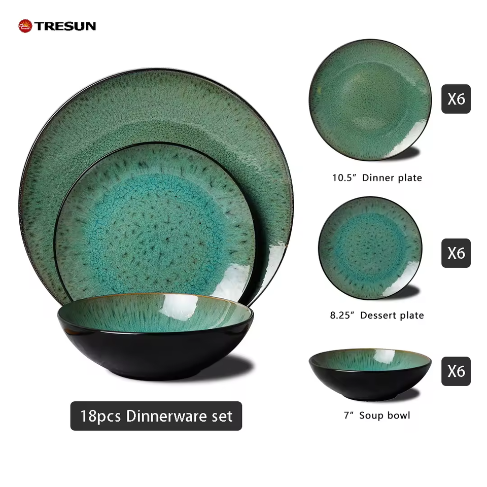 Top Selling Nordic Style Ceramic Green Dinnerware Set Eco-Friendly Underglaze Creative Tableware for Families