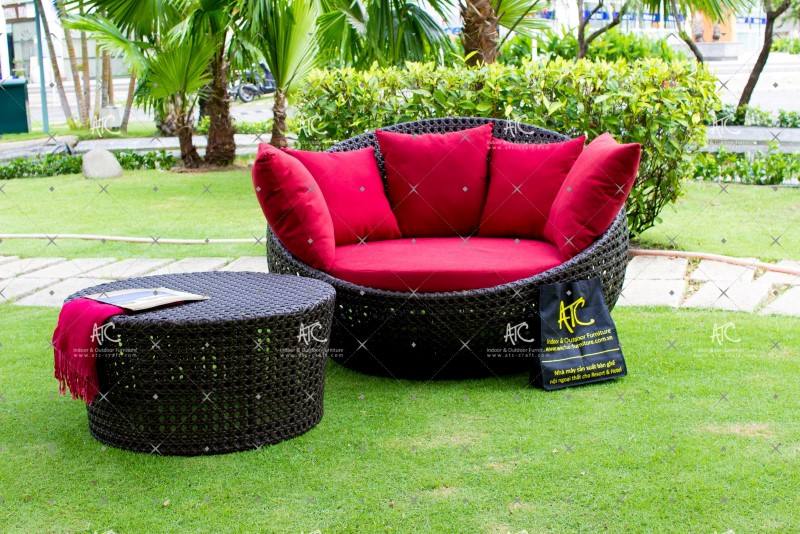 Chaise de soleil ronde en rotin et Poly, pour l'extérieur, offre spéciale,