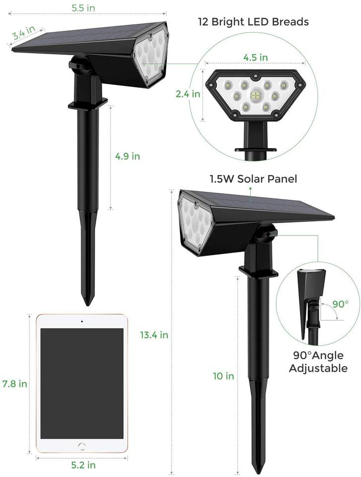 Top vente projecteurs extérieurs solaire paysage pelouse lumière étanche 12LED applique murale réglable pour allée jardin lumière solaire
