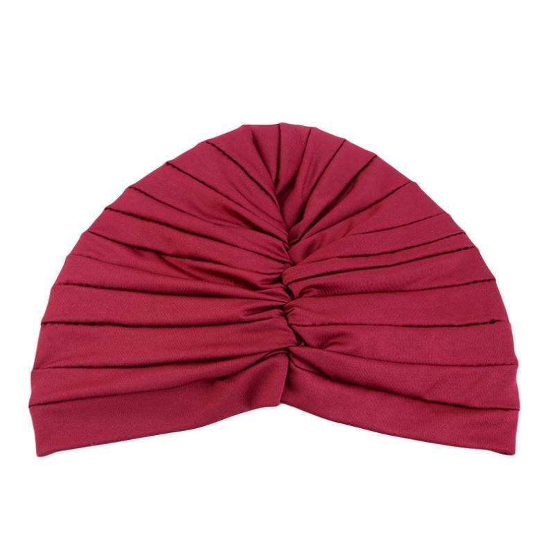 Top Selling Polyester Twist Turban Plain Color Chemo Cap Hair Care Elastic Plicated Style Headwraps