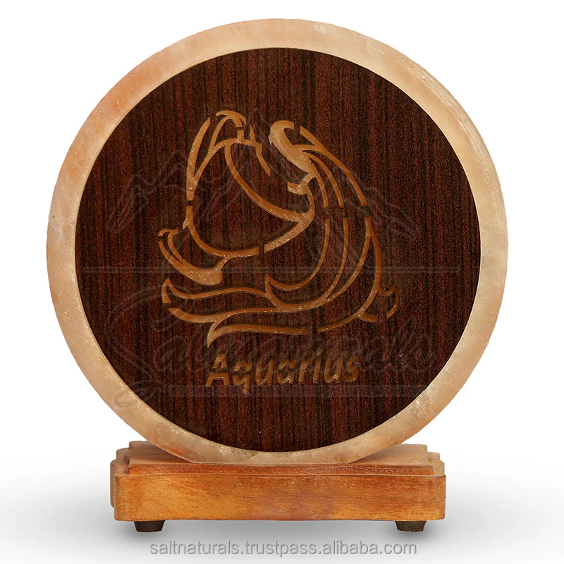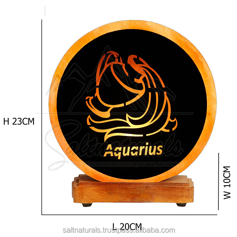 Lampe au sel de l'Himalaya en forme de Verseau de qualité supérieure faite à la main avec logo personnalisé et symbole naturel