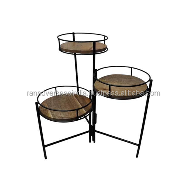 Table d'appoint en métal et bois à trois niveaux, parfaite pour exposer les plantes
