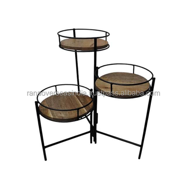 Nom du produit:Table d'appoint en métal et bois à trois niveaux, parfaite pour exposer les plantes