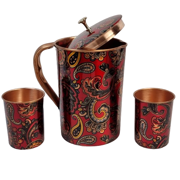 Cuivre pur le plus vendu avec résine Design multicolore Pichet à eau et à jus de qualité supérieure Articles utilitaires pour boissons