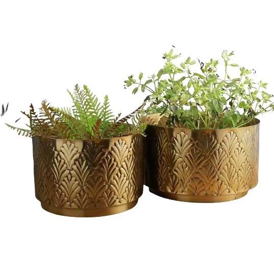 Jardinière de fleurs fraîches en métal de forme ronde la plus vendue or brillant fini pour jardinière décorative intérieure et extérieure