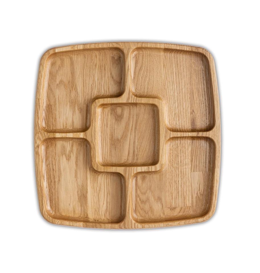 Nouveau plateau de service en bois sculpté à la main assiette divisée décorative vaisselle plat de collation de fruits secs personnalisé pour la décoration de la cuisine à la maison