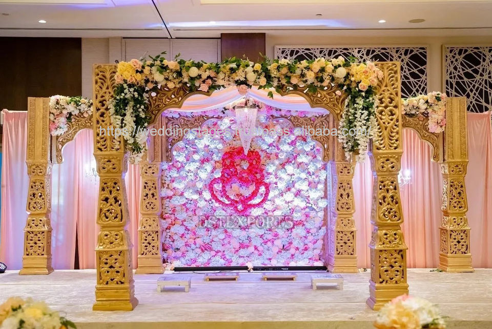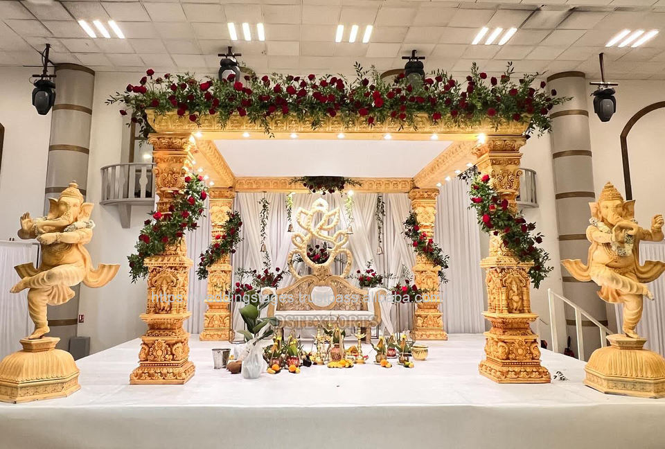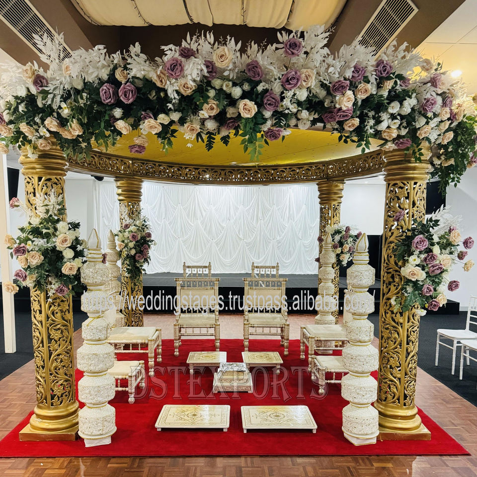 Mandap royal le plus vendu pour les mariages à destination Prix abordable Dernier design Pilier en bois sculpté Mandap de mariage traditionnel