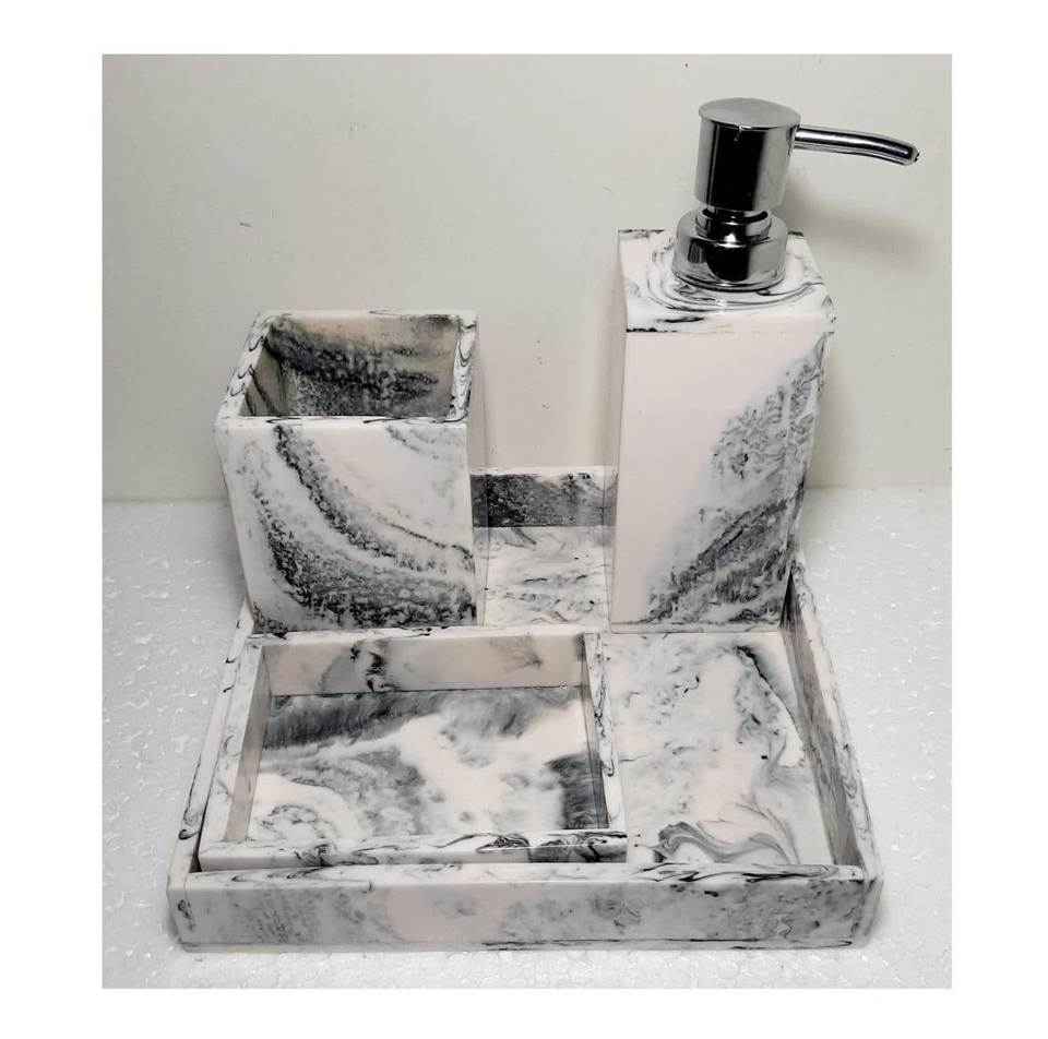 Ensemble de salle de bain en résine haut de gamme, disponible en échantillon, comprenant un porte-savon, un distributeur, un porte-brosse à dents, un gobelet, effet luxueux, imperméable, poli