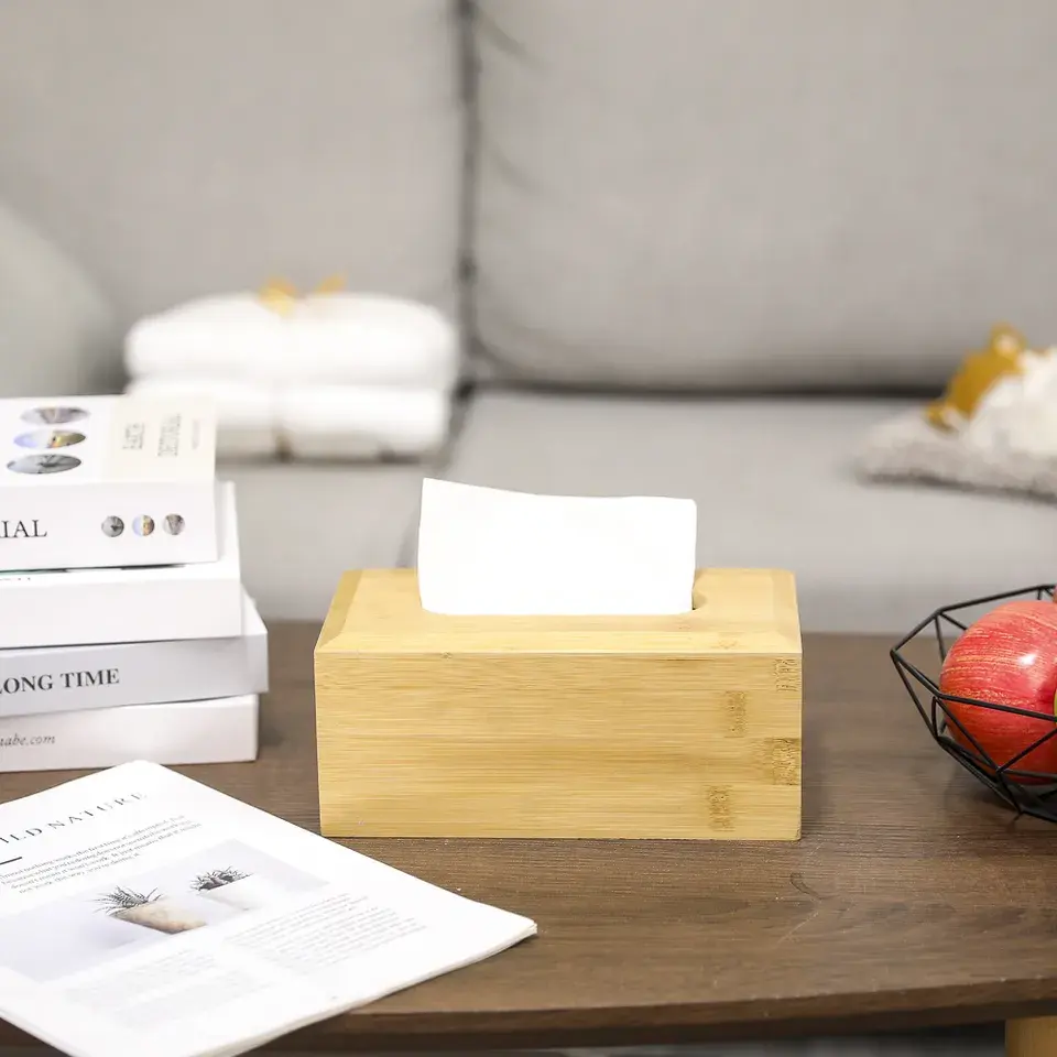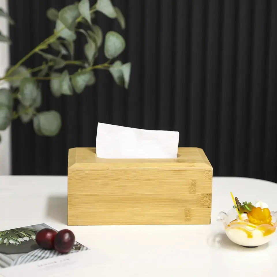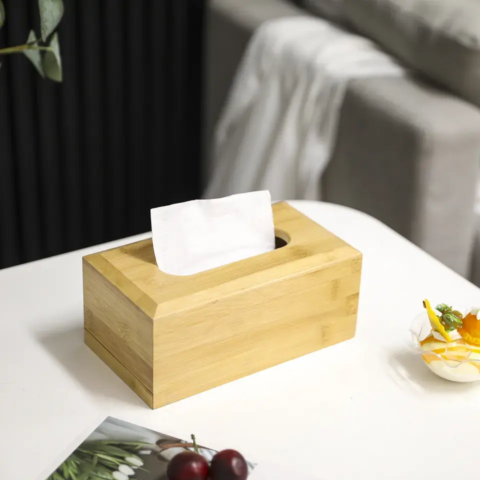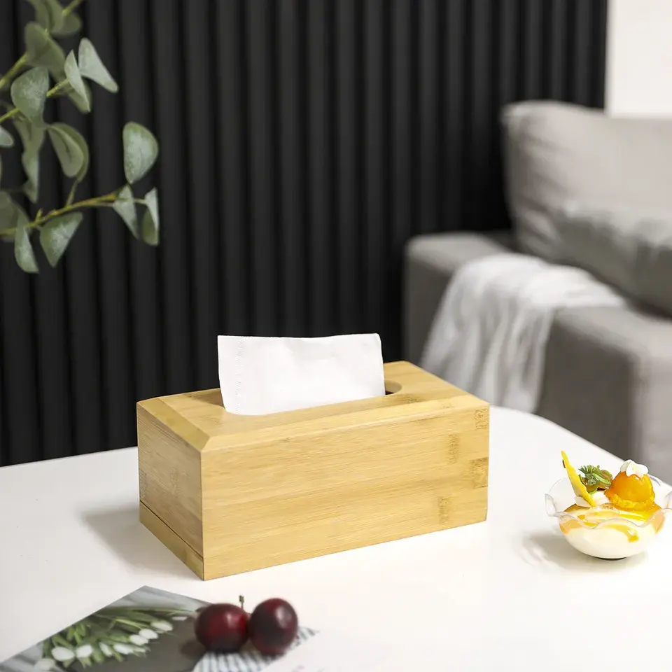 Distributeur de boîte à mouchoirs en bois de bambou de style simple le plus vendu porte-serviettes verni naturel avec utilisation de table de tapis de couvercle coulissant
