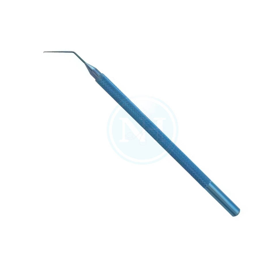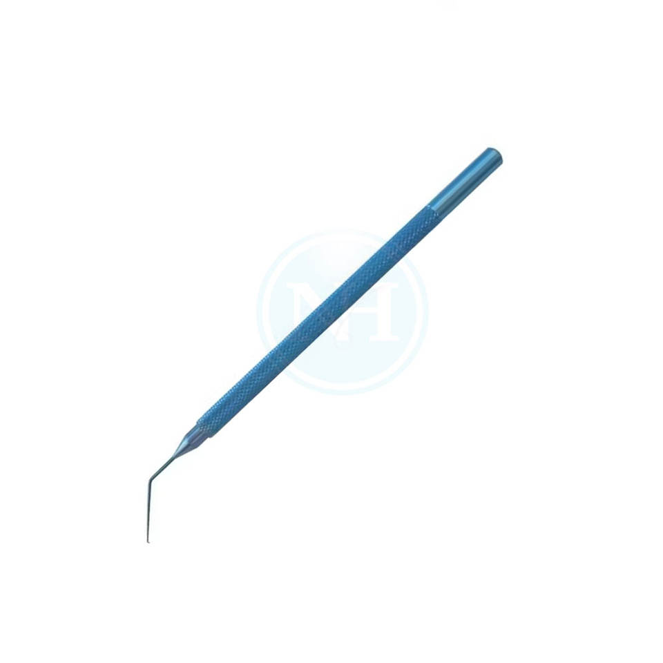 Nom du produit:Crochet de manipulation de lentilles Sinskey, poignée ronde, pointe émoussée angulaire de 0,2 mm de diamètre