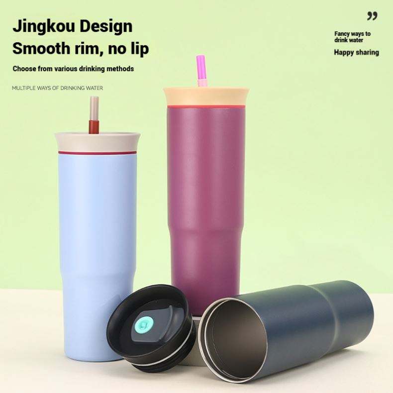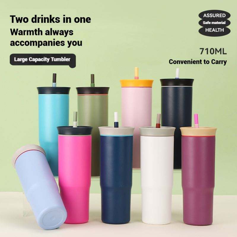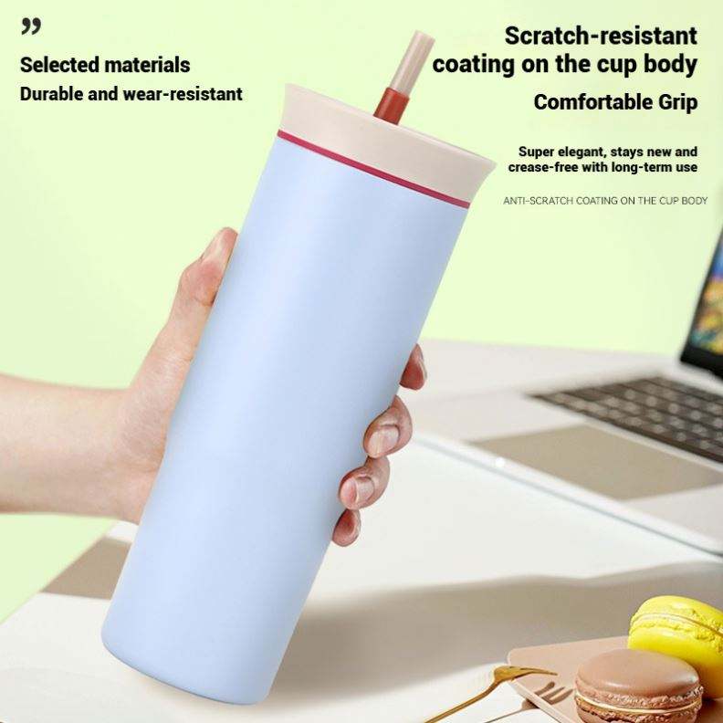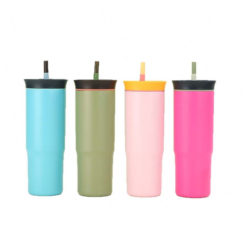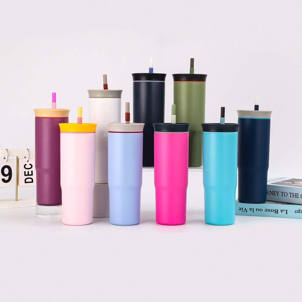 Bouteille en acier inoxydable la plus vendue, tasse à café personnalisée avec logo imprimé et paille, idéale pour l'extérieur