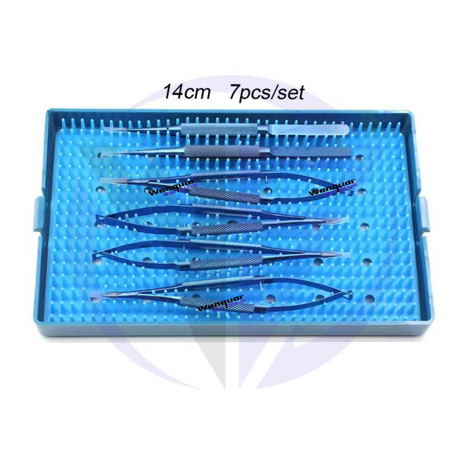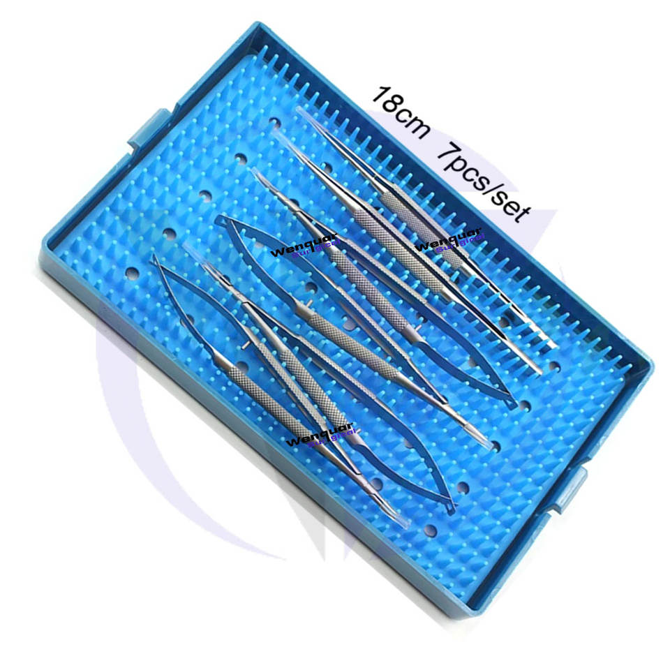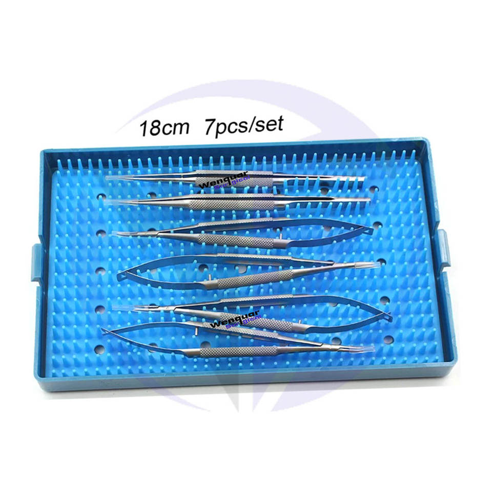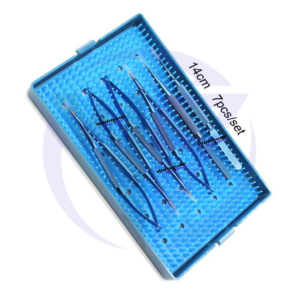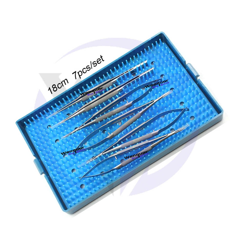 Kit de suture ophtalmique chirurgical le plus vendu, 7 pièces, instruments de microscope réutilisables avec boîte de stérilisation