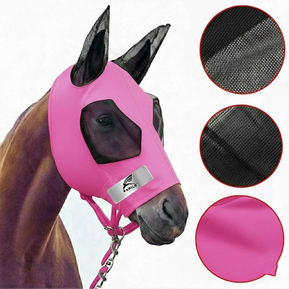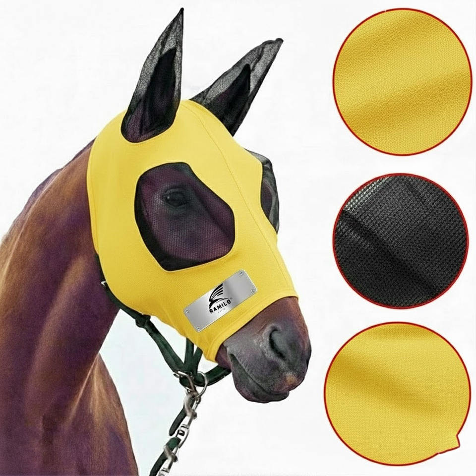 Masque anti-mouches pour chevaux, best-seller, protection UV, confortable, avec oreilles, respirant, élastique, avec couvre-yeux en maille