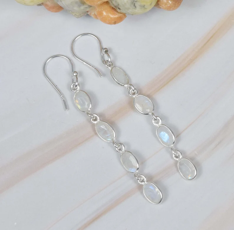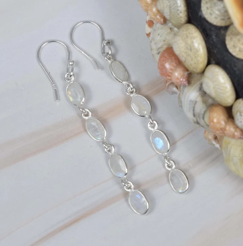 Nom du produit:Boucles d'oreilles Pierre de Lune Arc-en-ciel