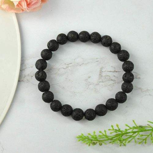 Bracelet d'aromathérapie noir mat unisexe le plus vendu avec des perles de pierre de lave naturelle Bracelet de forme ronde polie