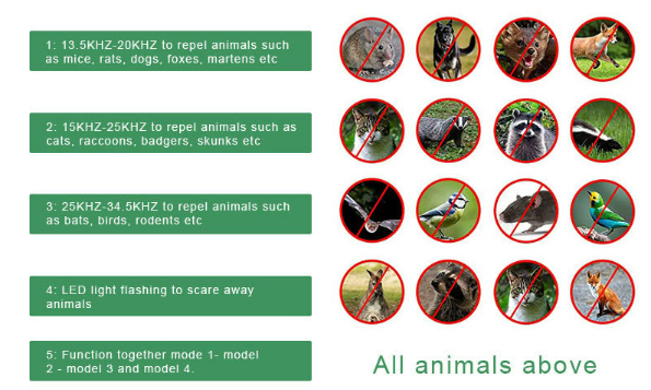 Top vente étanche facilement installer répulsif à ultrasons à énergie solaire pour protéger les rongeurs singes chiens