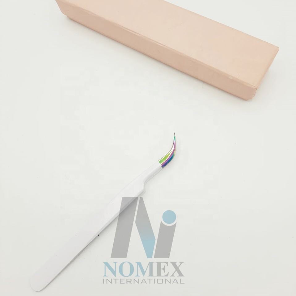 Pince à épiler blanche avec revêtement en poudre pour extensions de cils, pointe incurvée, acier inoxydable multicolore, outils de lifting des cils, logo personnalisé