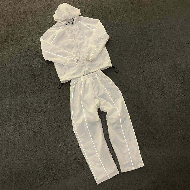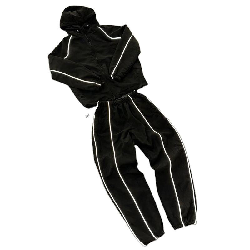 Ensemble coupe-vent le plus vendu, ensemble de survêtement en nylon à capuche confortable pour homme, taille plus, avec des reflets brillants