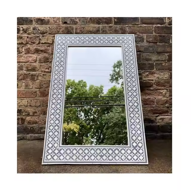 Top Selling Wooden and Bone Inlay Mirror Frame Modern Rectangular Design for Wall Use for Home by crescent crafts