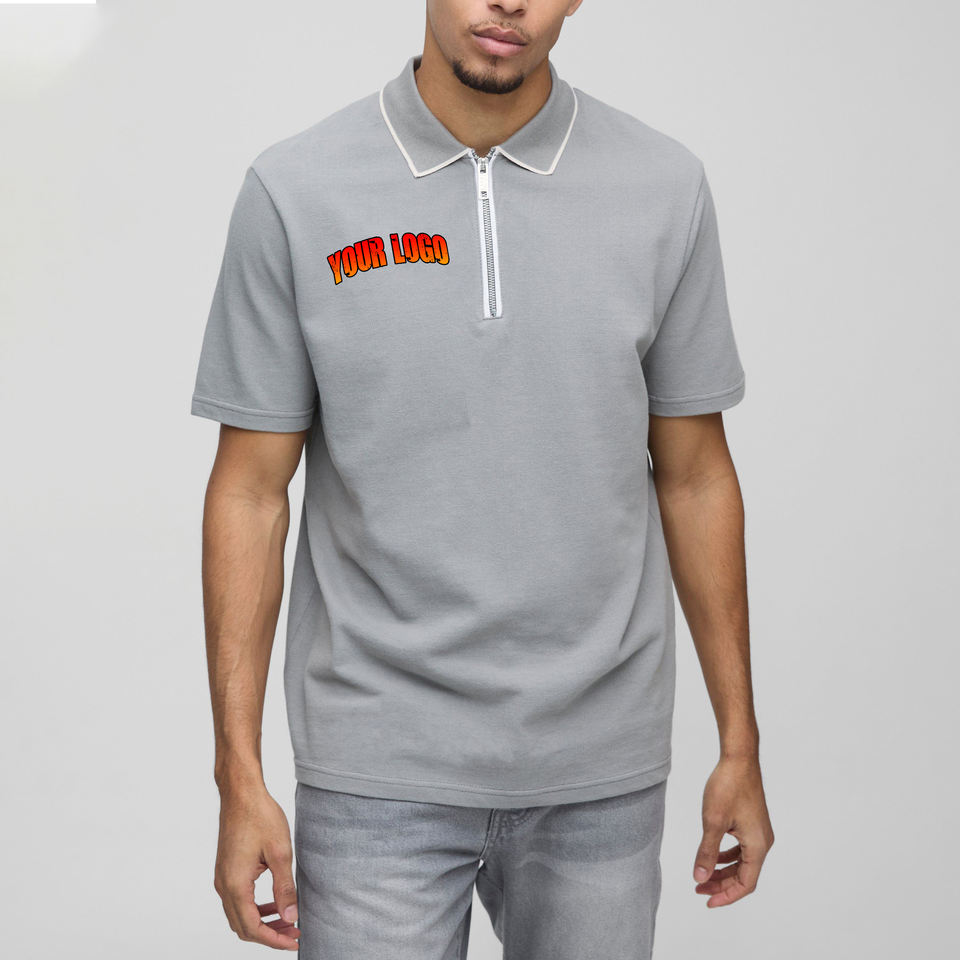 T-shirt Homme à Col Zippé Tricoté 100% Coton Coupe Ample avec Logo Imprimé par Transfert Thermique et Poche Manches Courtes – Meilleures Ventes