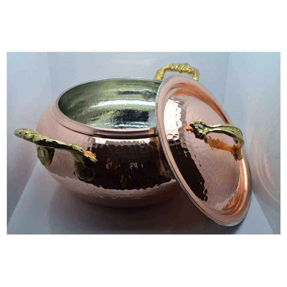 Meilleures ventes à bas prix Plat de service Chauffe-plat exportateur indien Ensembles d'ustensiles de cuisine Pot de service en cuivre sûr