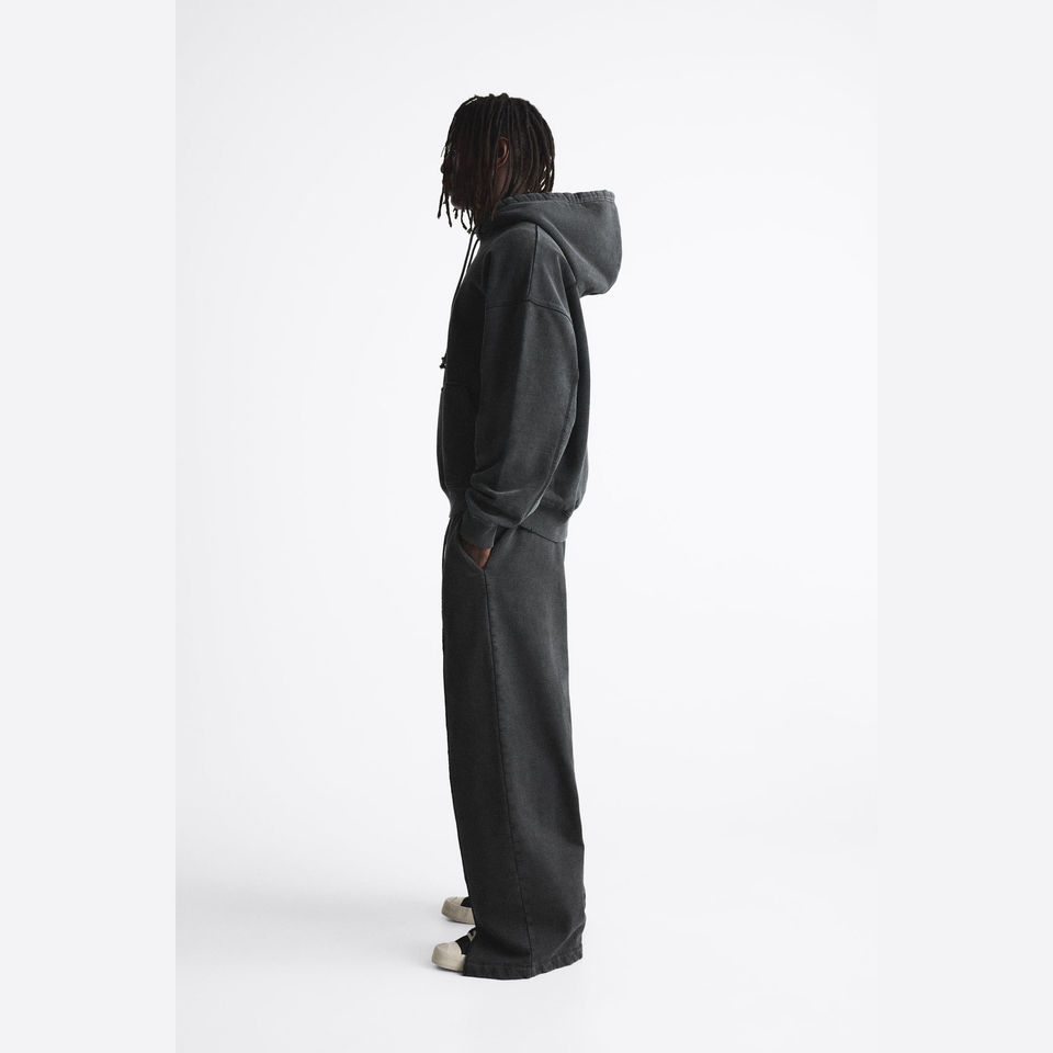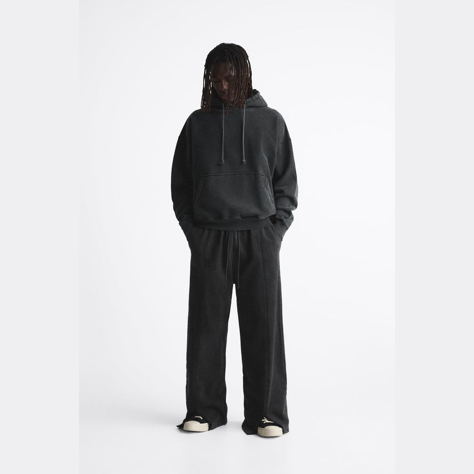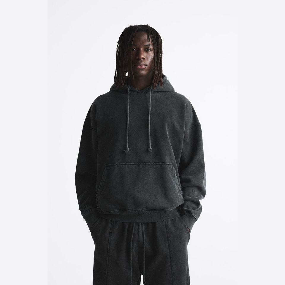 Ensemble de survêtements 2 pièces grande taille 100 % coton, streetwear d'hiver, imprimé personnalisé, respirant, léger, en molleton délavé à l'acide, à capuche, uni