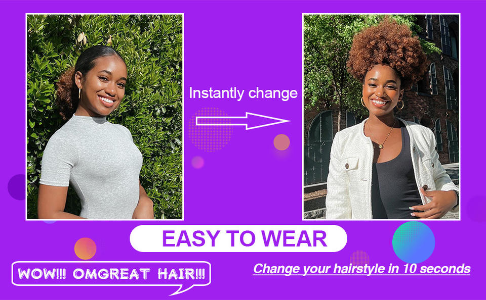 Extension de cheveux synthétique courte afro bouffante, queue de cheval à clip, chignon bouffant crépu pour femme, résistant à la chaleur, avec bonnet en maille élastique