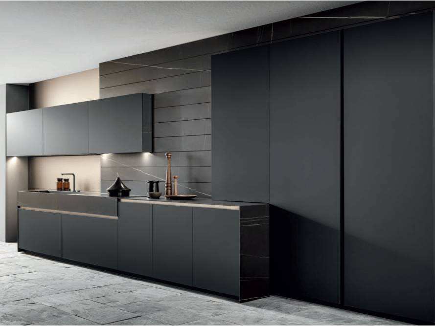 Meubles de cuisine modulaires haut de gamme - Design moderne minimaliste en acier inoxydable, écologique avec évier, pour villas et appartements