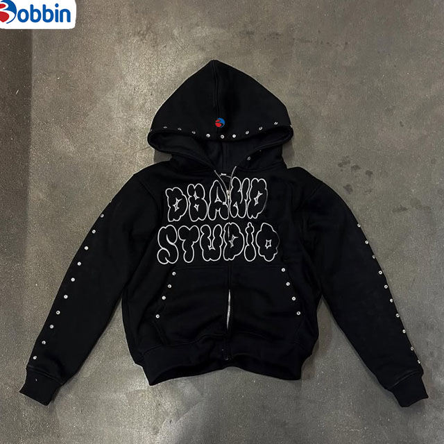 Ensemble de survêtement tendance avec logo personnalisé imprimé, coupe décontractée, orné de strass, pour un usage quotidien, comprenant un sweat à capuche et un pantalon de survêtement brillants.