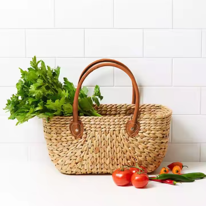 Top Tendance Paniers De Rangement En Jacinthe D'eau Naturelle Panier De Noël Tissé À La Main avec Poignée En Gros Du Vietnam