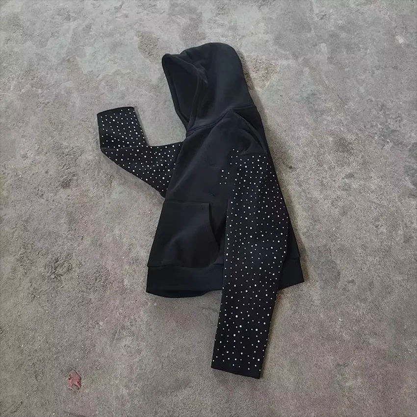 Ensemble tendance de survêtement unisexe en deux pièces avec sweat-shirt et pantalon de jogging orné de strass, style baggy, délavé à l'acide, pour hommes, 100% coton