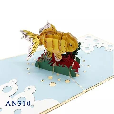 Top tendance 3D Pop carte à la main poisson Art papier artisanat personnalisé découpé au Laser poisson rouge conception meilleur choix pour Vietnam cadeaux décor à la maison