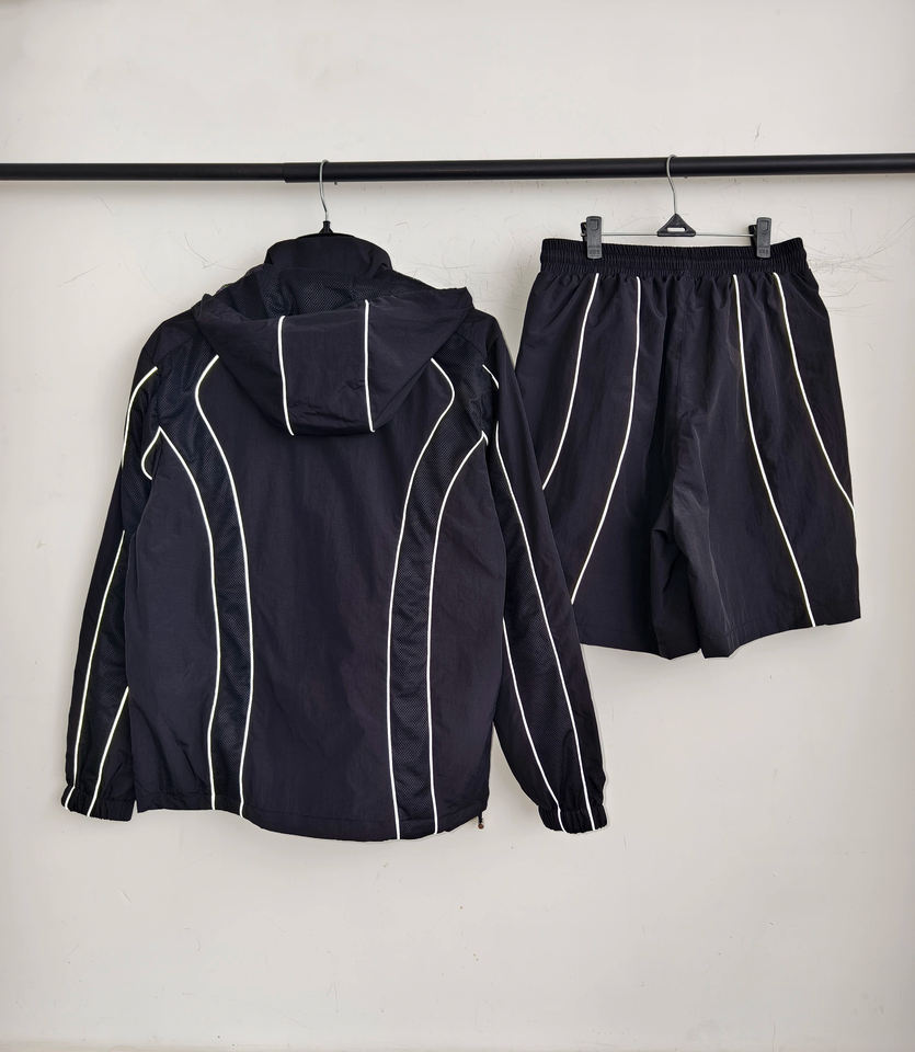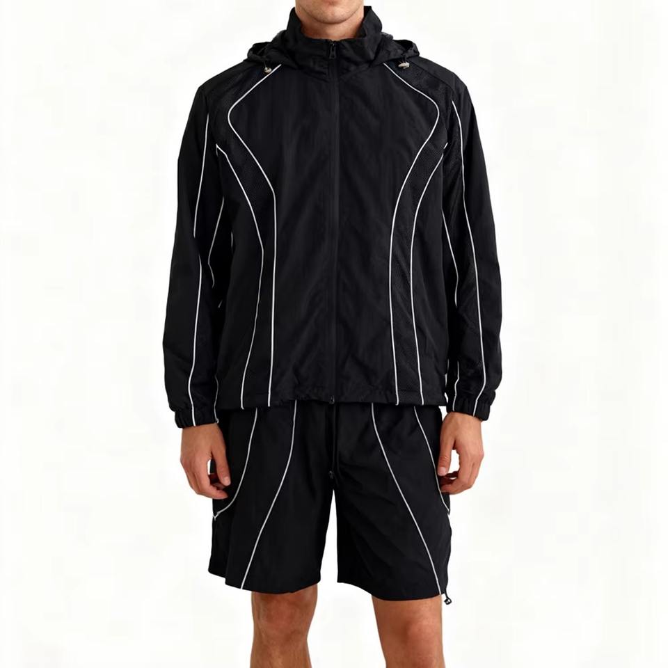 Ensemble survêtement homme tendance : veste coupe-vent en polyester et short, design personnalisé, fermeture éclair intégrale, en nylon