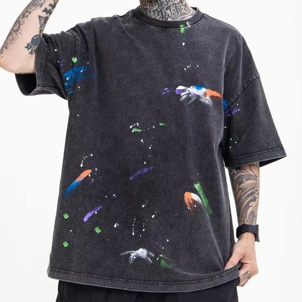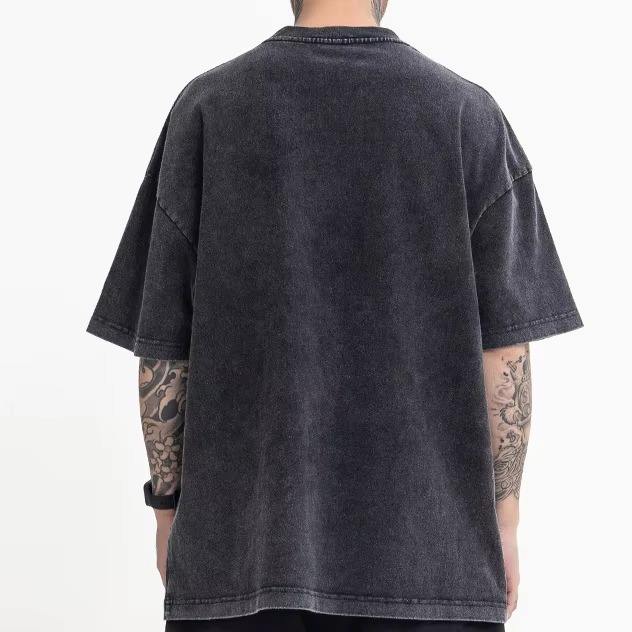 T-shirt unisexe tendance avec logo personnalisé, effet délavé, 100% coton, respirant, coupe oversize, style vintage pour hommes