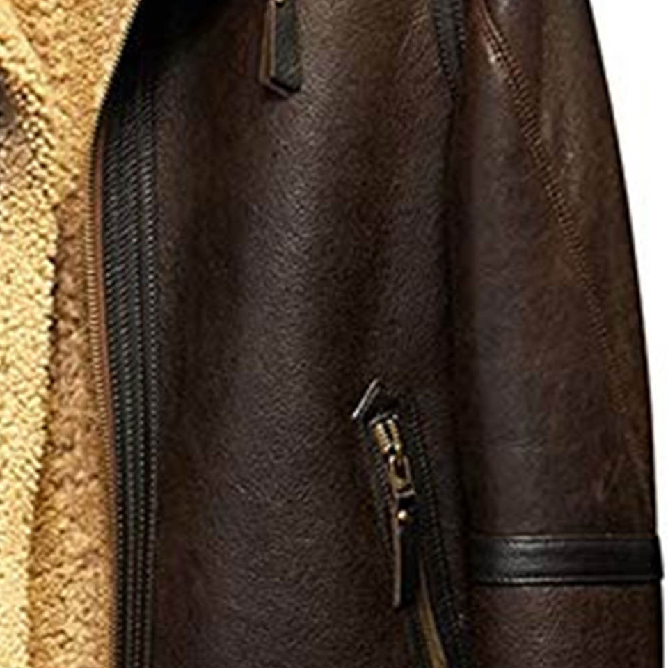Veste en cuir de mouton marron en peau de mouton, veste d'hiver en peau de mouton aviateur au design personnalisé OEM