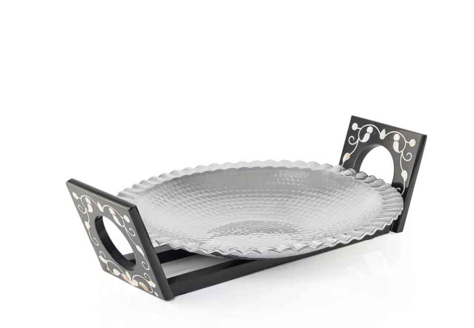 Plateau de service en métal brillant, tendance, pour la décoration de table de mariage, idéal pour la restauration et les cuisines de designers.